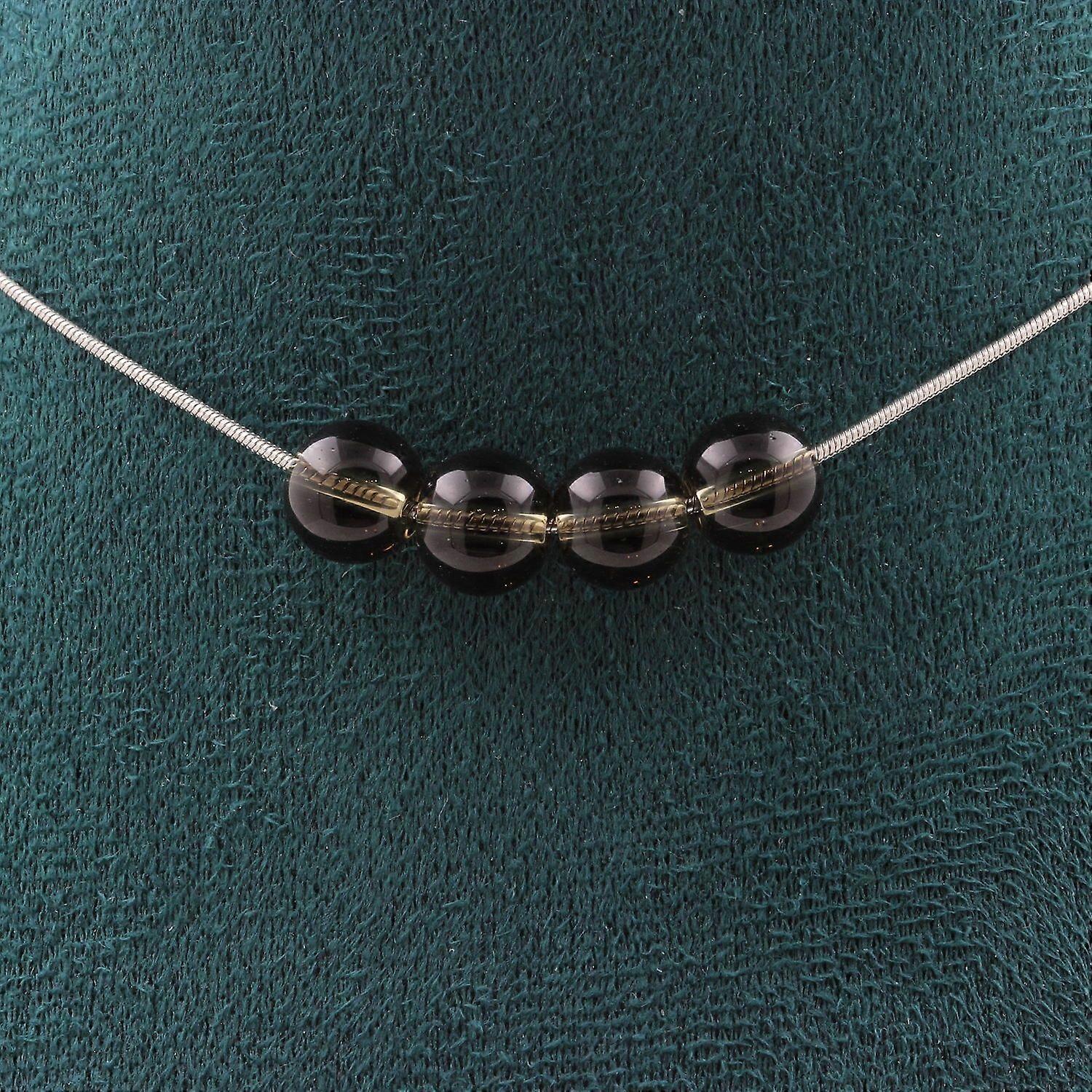 Necklace with 4 smoky quartz beads 8 mm, stainless steel chain