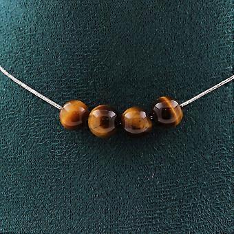 Necklace with 4 Tiger Eye beads 8 mm Stainless steel chain