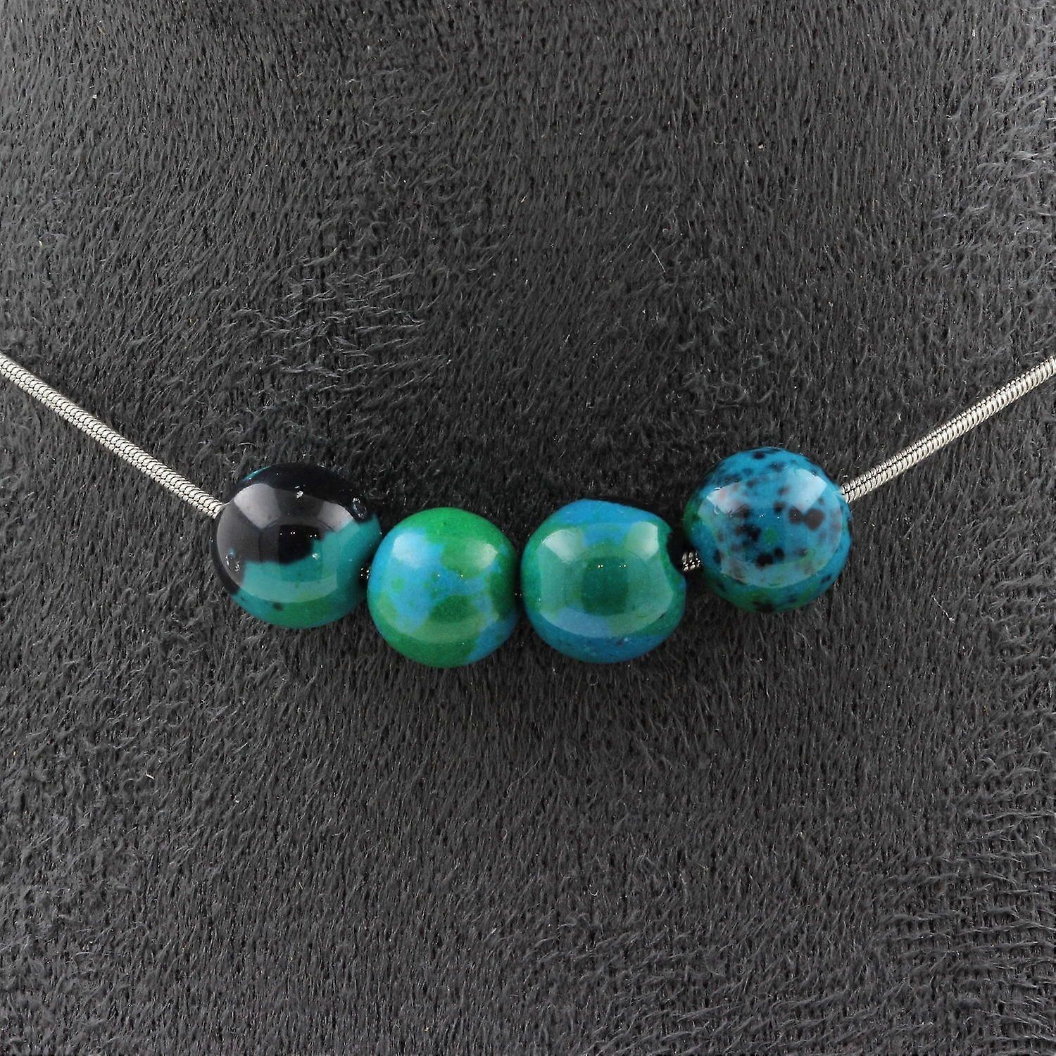 Necklace with 4 Tinted Chrysocolla beads 8 mm Stainless steel chain
