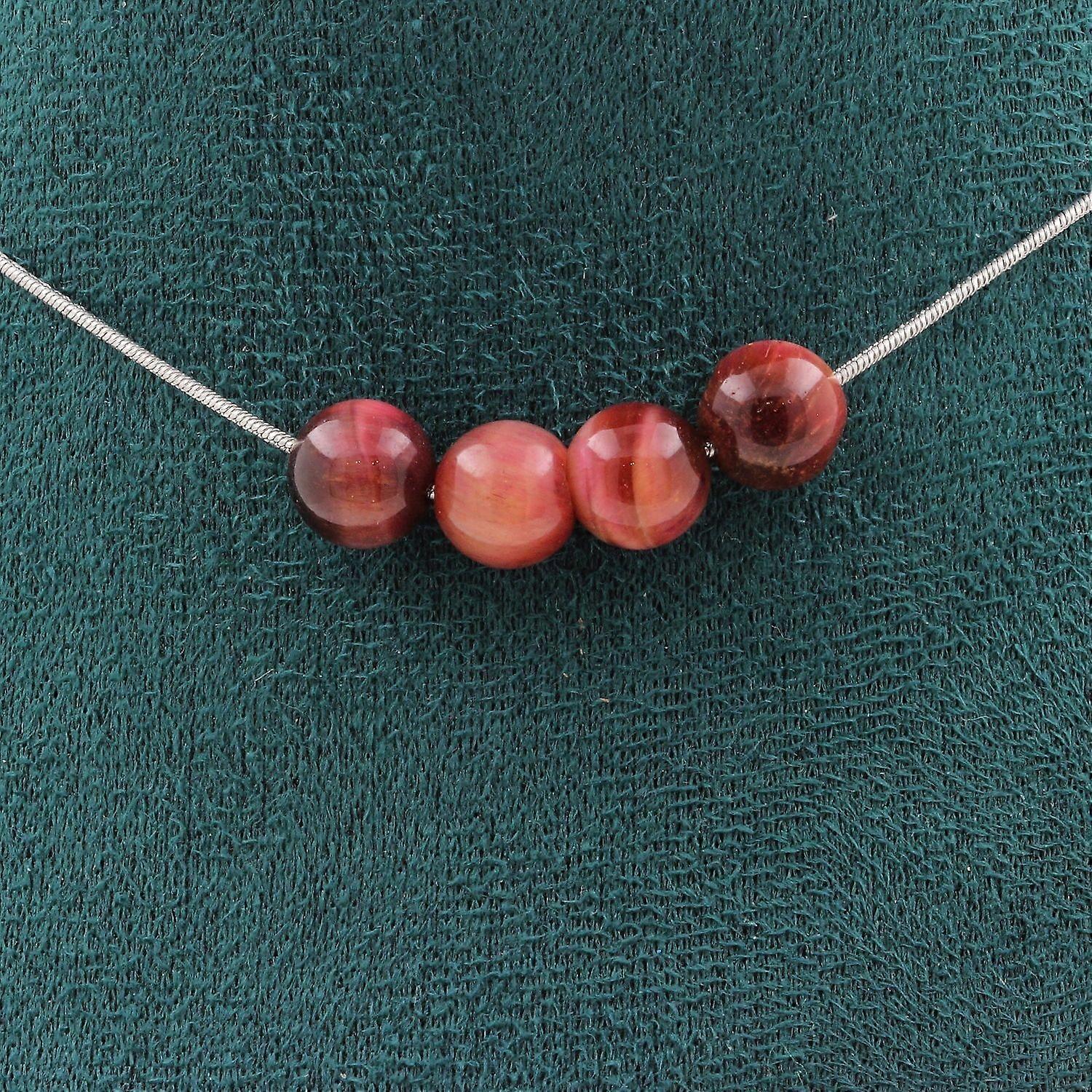 Necklace with 4 two-tone peach Tiger's Eye beads 8 mm, stainless steel chain