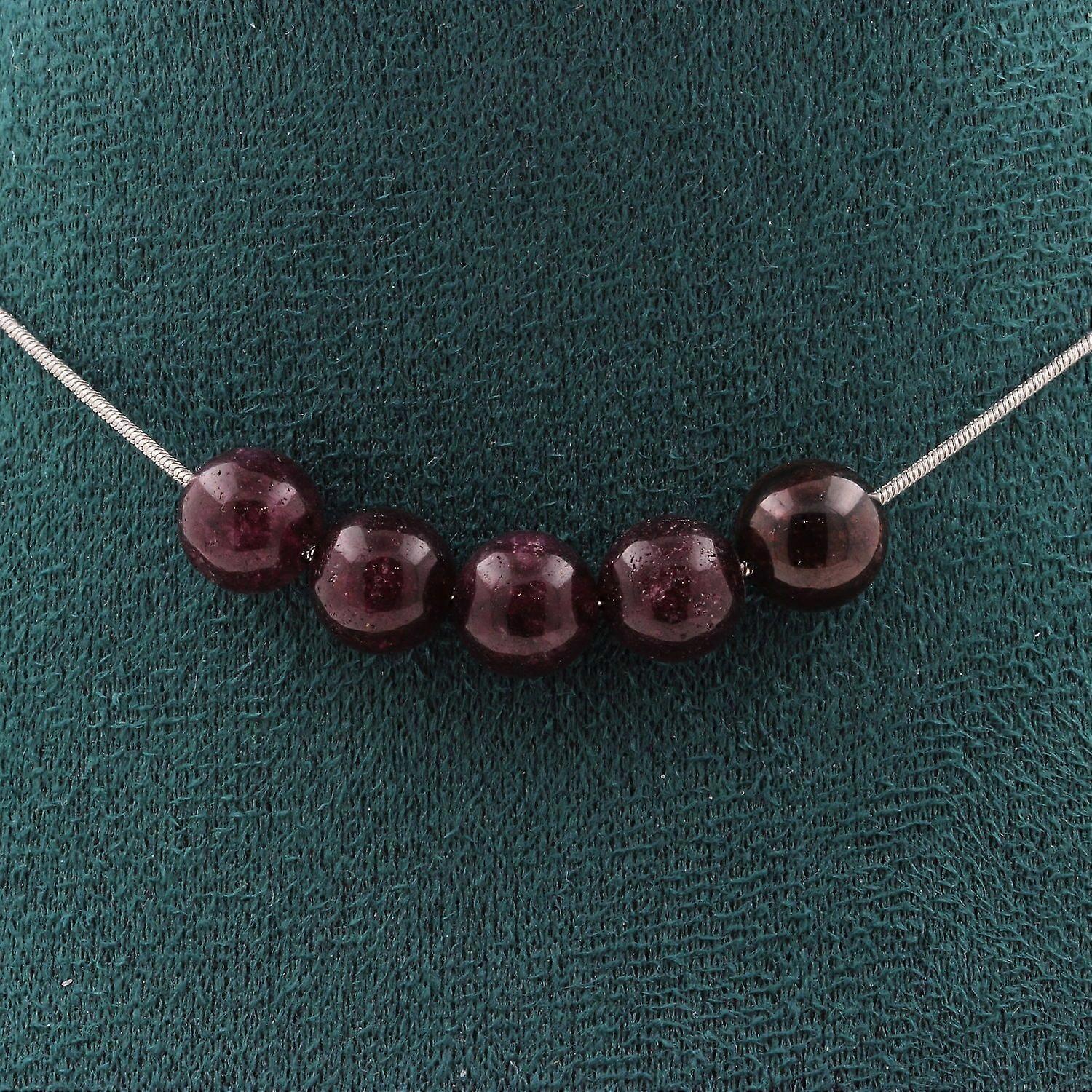 Necklace with 5 Garnet beads 8 mm Stainless steel chain
