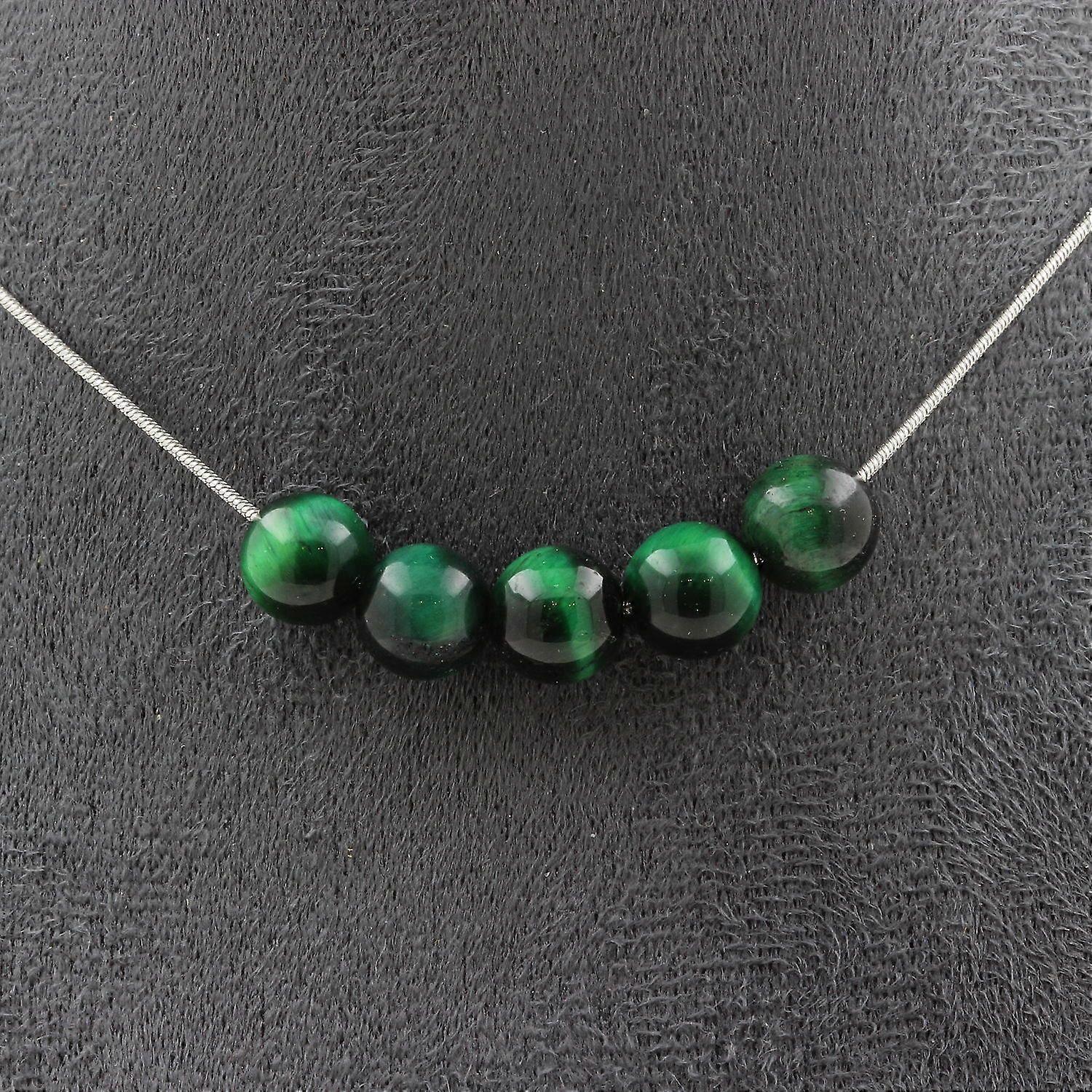 Necklace with 5 green Tiger Eye beads 8 mm, stainless steel chain