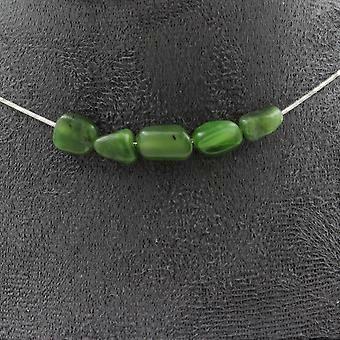 Necklace with 5 Nephrite Jade beads from Siberia (Russia) Stainless steel chain