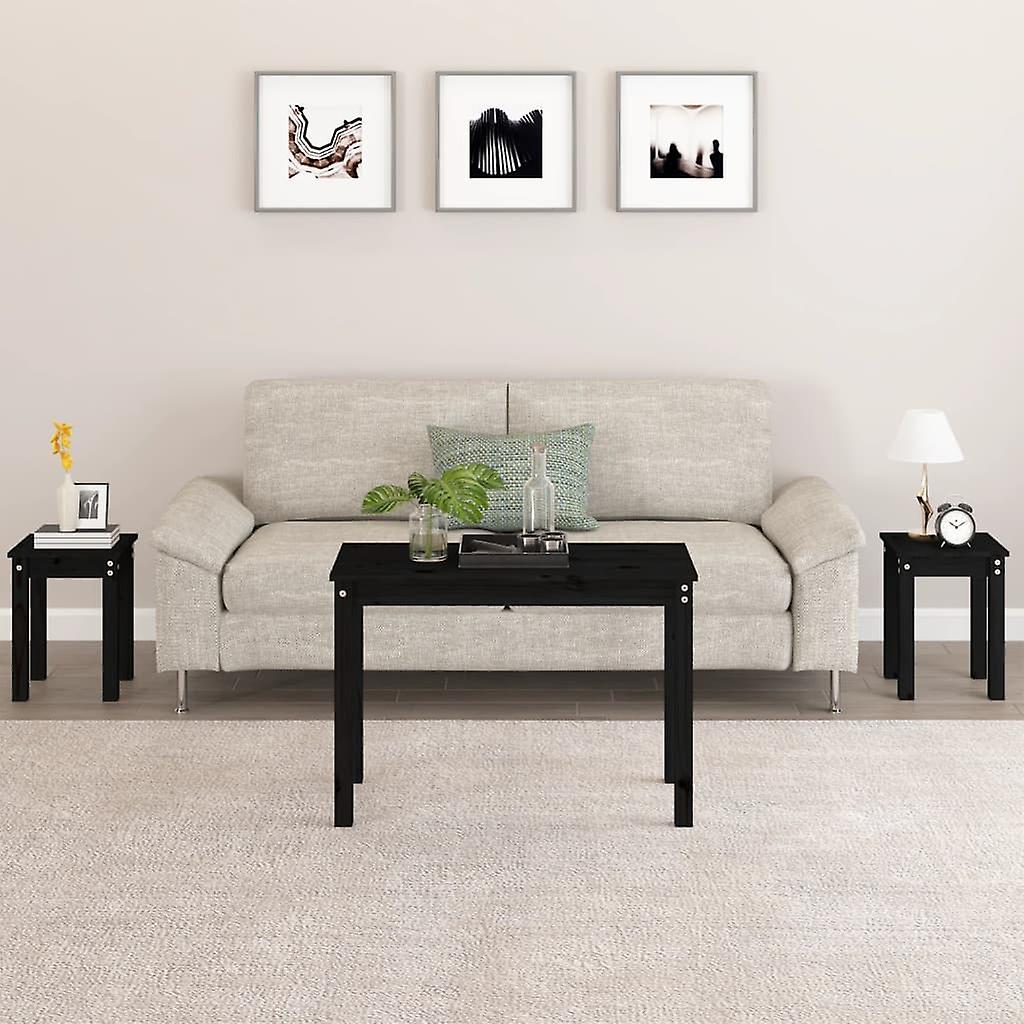Satztische 3 Stk. Schwarz Massivholz Kiefer