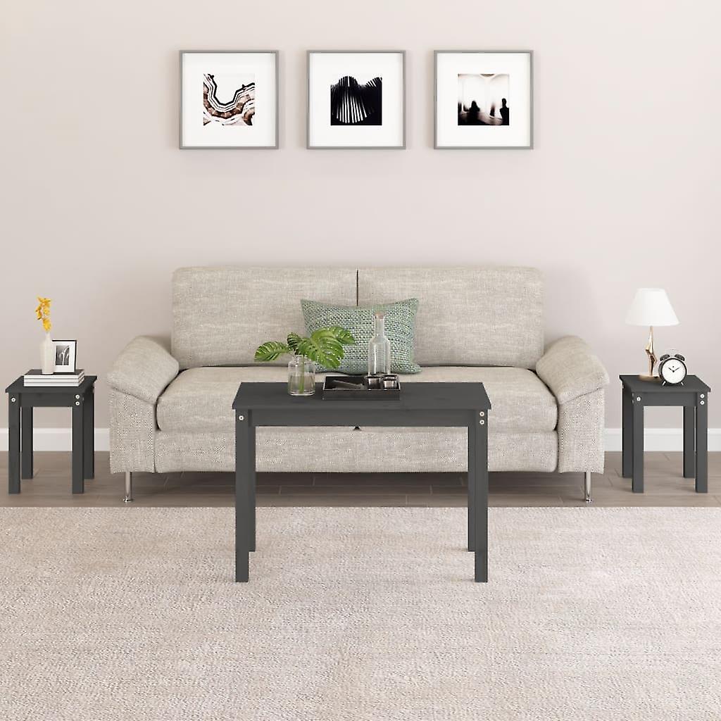 Satztische 3 Stk. Grau Massivholz Kiefer