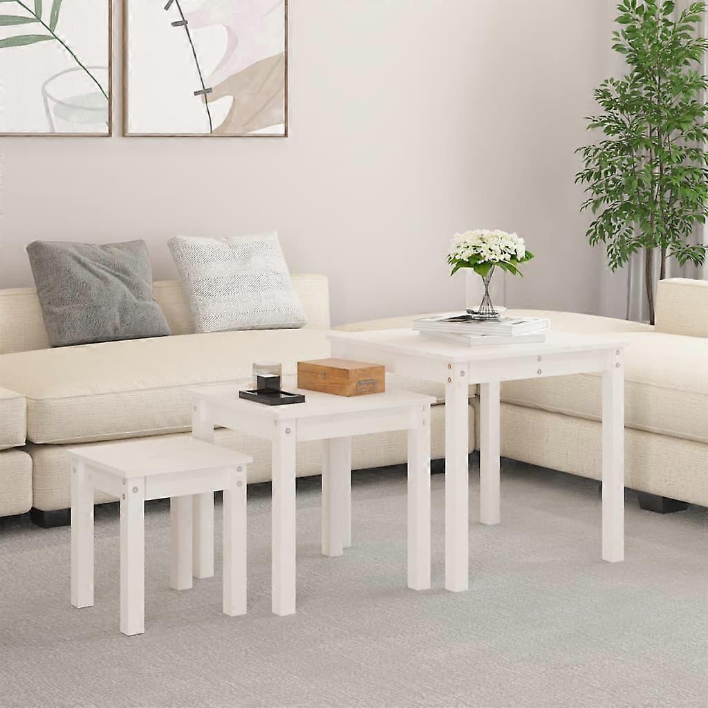 Satztische 3 Stk. Weiß Massivholz Kiefer