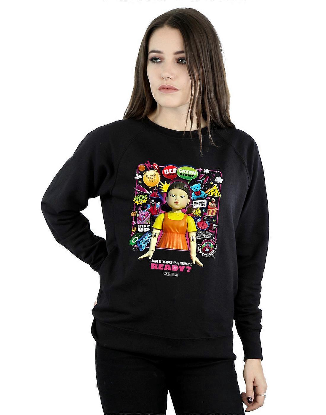 Netflix Women's Squid Game The Challenge Younghee Doll Collage Sweatshirt