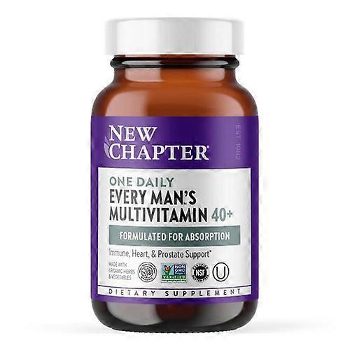 New Chapter's One Daily Every Man's Multivitamin 40 is specially formulated for men in their 40s and beyond. This whole-food multivitamin provides essential nutrients for overall wellness, energy, and vitality. The formula is designed to support heart health, immune health, and prostate health while promoting energy levels. Made with organic vegetables and herbs, these easy-to-swallow tablets are gentle on the stomach and can be taken anytime, even on an empty stomach. Each tablet contains fermented vitamins and nutrients for better absorption and utilizes clean ingredients for a healthier option.