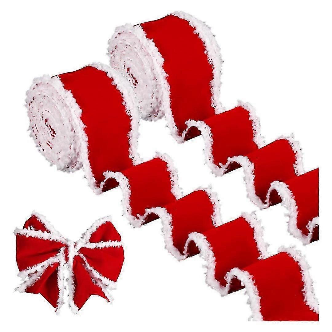New Christmas red and white fur edge decoration Christmas tree bow DIY Christmas gift wrapping ribbon red flannel fur white edge 10m