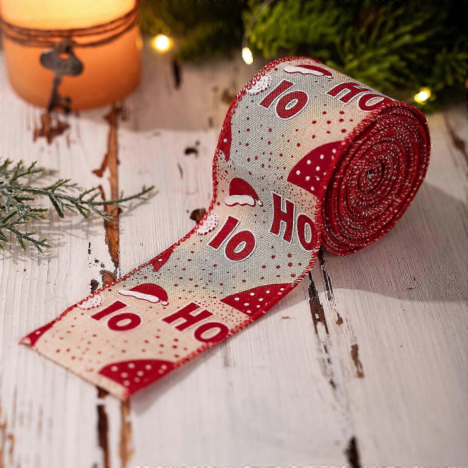 New Christmas ribbon Christmas HOHO printed ribbon wreath decoration gift box tie tree decoration ribbon Christmas HOHO printed ribbon linen