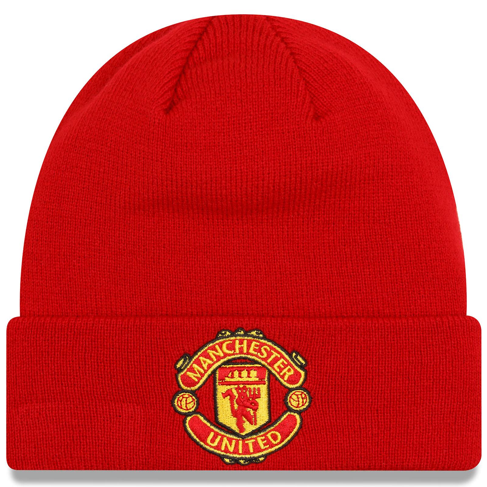 New Era Mens Manchester United Essentials Knitted Cuffed Winter Beanie Hat - Red