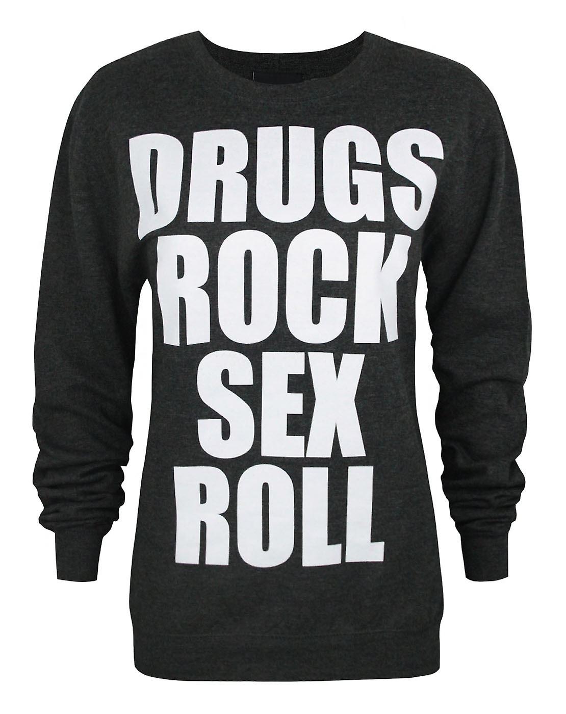 New Era Womens Sweatshirt Black Drugs, Rock, Sex, Roll Text