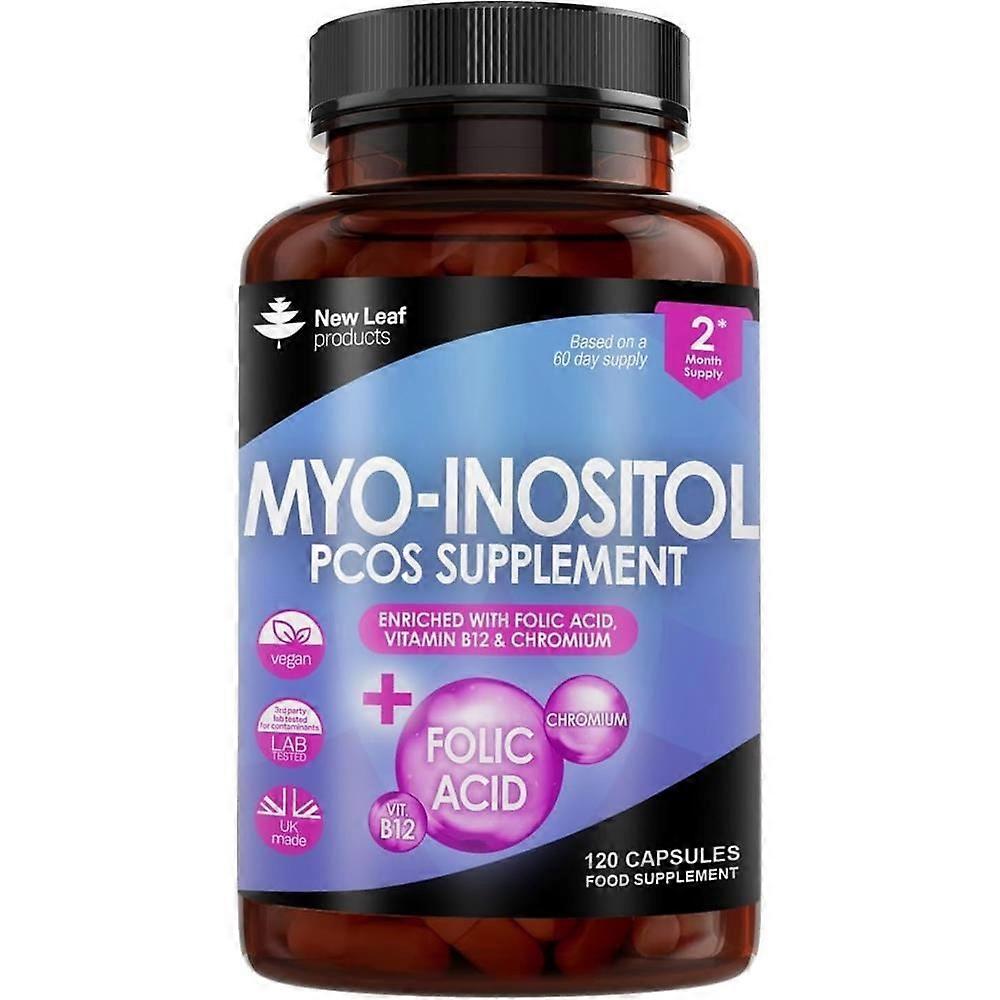 Experience targeted support with New Leaf Products Myo-Inositol PCOS Supplement, specially formulated for women managing Polycystic Ovary Syndrome (PCOS). This premium blend combines Myo-Inositol with essential nutrients including Folic Acid, Vitamin B12, and Chromium to promote hormonal balance and support metabolic health. Key Benefits Hormonal Balance: Myo-Inositol, a naturally occurring B-vitamin family compound, plays a vital role in cellular function and hormonal regulation. Energy & Vitality: Vitamin B12 supports normal energy-yielding metabolism and helps reduce tiredness and fatigue. Blood Glucose Support: Chromium contributes to maintaining normal blood glucose levels, an important factor for metabolic health in PCOS. Folic Acid Support: Provides additional nutritional support tailored to the needs of women with PCOS-related concerns. Usage & Supply Each bottle contains 120 capsules, providing a convenient 2-month supply when taken as recommended (2 capsules daily). Easily incorporate this supplement into your daily wellness routine to support long-term hormonal and metabolic balance. Quality & Safety Committed to excellence, every ingredient in our Myo-Inositol PCOS Supplement undergoes stringent quality testing before manufacturing. Post-production, each batch is independently tested by Eurofins, Europe's largest testing facility, accredited by UKAS under ISO/IEC 17025:2017 standards. This ensures the product is free from heavy metals and unwanted compounds, delivering safe, reliable supplementation. Why Choose New Leaf Products? New Leaf Products is a trusted name in vitamins and supplements, recognized globally for premium quality and rigorous standards. Manufactured and formulated in the UK, our products undergo independent lab testing to guarantee purity, safety, and effectiveness. Choose New Leaf Products for your health journey and experience the difference of clinically conscious supplementation.