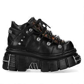 New Rock M-106N-C86 Unisex Metallic Black Flame Classic Leather Biker Gothic Ankle Boots
