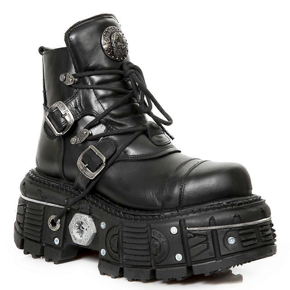 New Rock M-TANK007-S1 Black Platform Metallic Punk Rock Military Leather Biker Gothic Ankle Boots