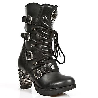 NEW ROCK TR003-S1 Ladies Metallic Black Leather Shoes
