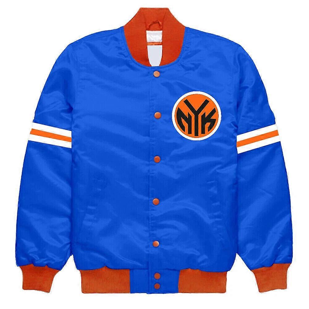 New York Knicks Blue Satin Baseball Jacket Letterman Jacket Varsity Jacket-031