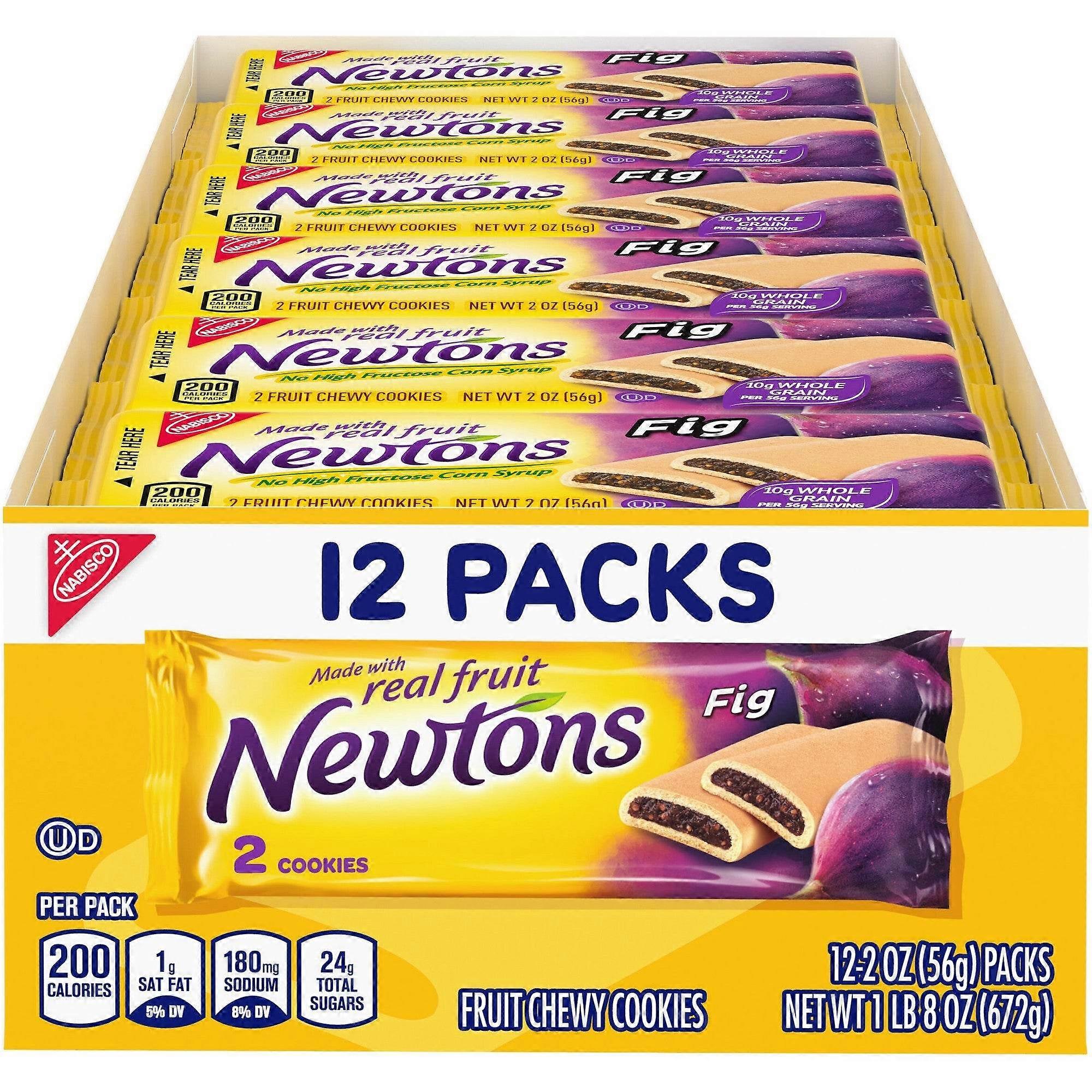 Newtons Soft and Fruit Chewy Fig Cookies are individually packaged for easy lunchbox prep and convenient on-the-go nibbling. Made with real fruit for delicious flavor, these rectangle-shaped cookies are soft and chewy for satisfying snacking. Each 56 gram serving of these low fat cookies includes 10 grams of whole grain and no high fructose corn syrup. Toss these fruit cookies in your purse or briefcase to avoid afternoon hunger pangs, or include a pack in your lunch for a special treat. Individual snack packs keep these chewy cookies fresh.