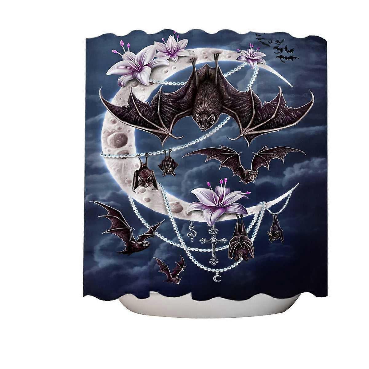 Night Art Bat Moon and Lilies Shower Curtain