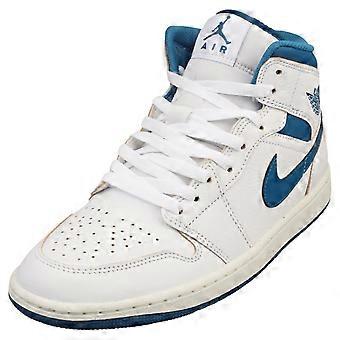 Nike Air Jordan 1 Mid Se Blue Logo White Trainers