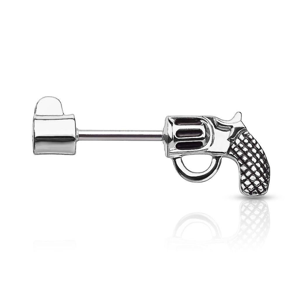 Nipple barbells with a pistol design surgical steel 14 gauge - sold as a pair
