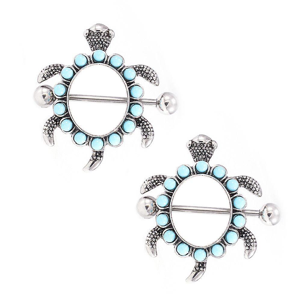 Nipple shield turtle design with aqua gems 14g.