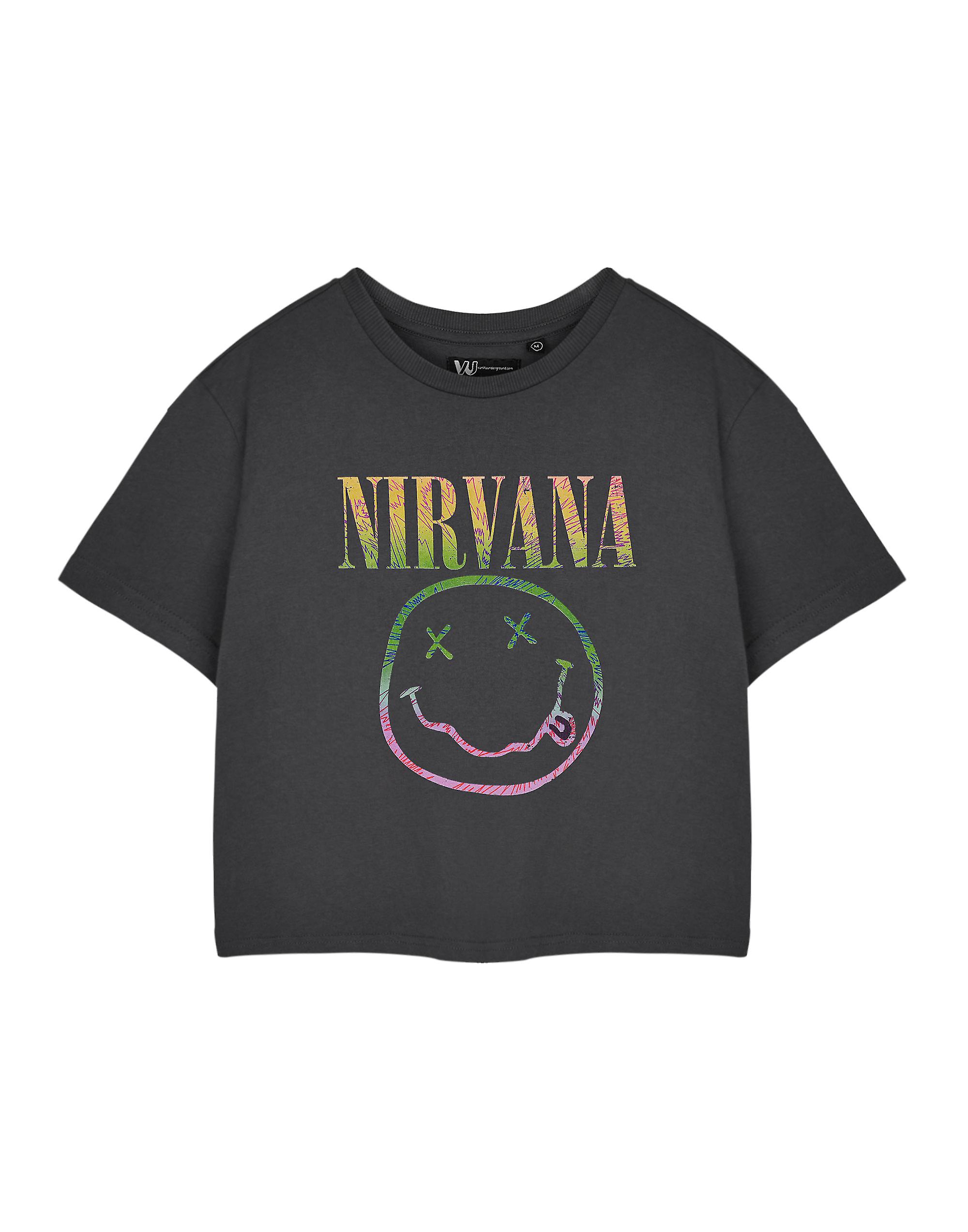Nirvana Womens Cropped Short Sleeved T-Shirt Grey Rainbow Logo