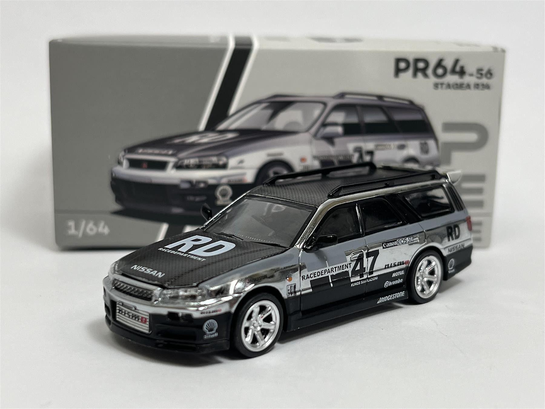 Nissan Stagea Chrome Silver 1:64 Scale Pop Race PR640056