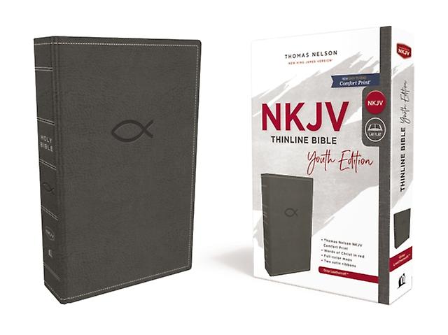 Nkjv Thinline Bible Youth Edition Leathersoft Gray Red Letter Com by Thomas Nelson Leather fine binding Book