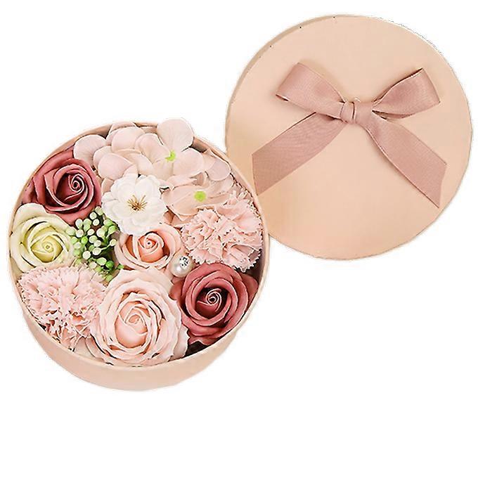 Nneoba Non-withered Soap Flower Small Round Box Decoration Set - Big Pink Simulation Flowers