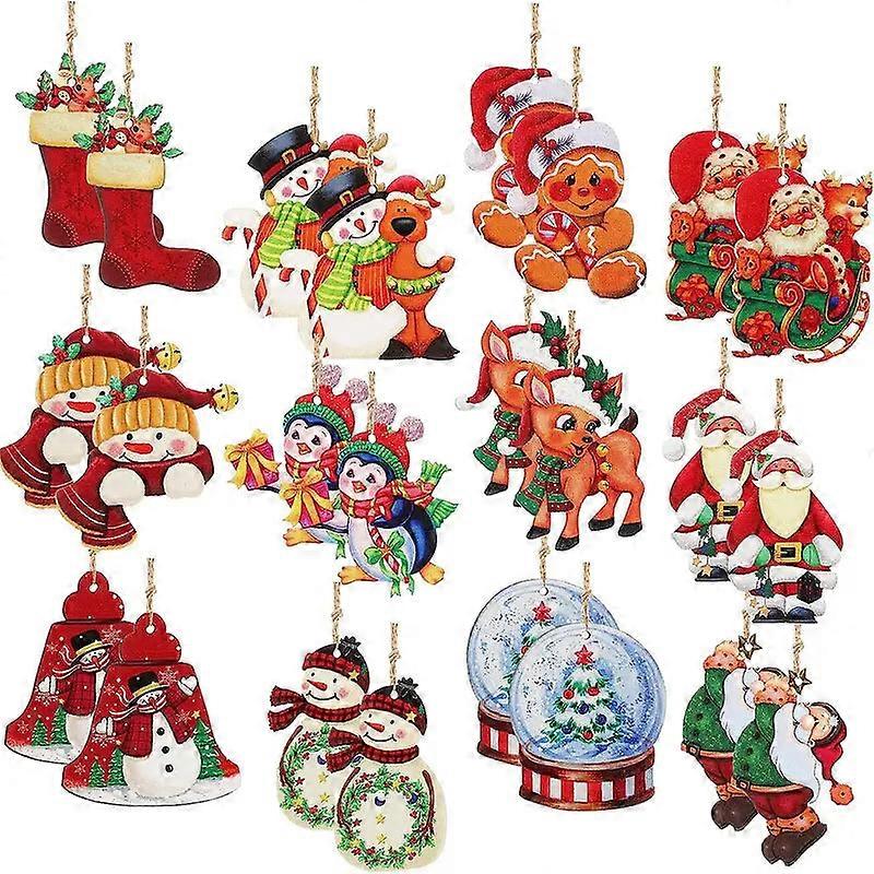 Nnetm 24-piece Christmas Wooden Hanging Ornaments Set For Festive Tree Decoration Awo57479
