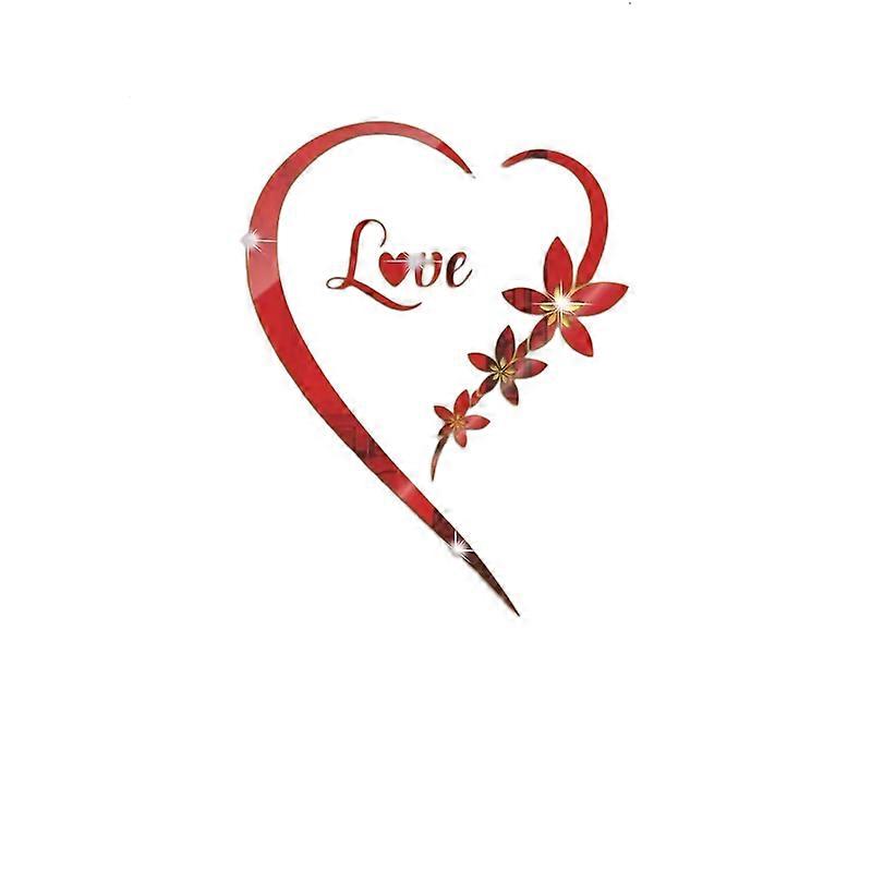 Nnetm Romantic Love Heart Mirror Wall Sticker Set - Self-adhesive Removable Acrylic(red) Awo13863