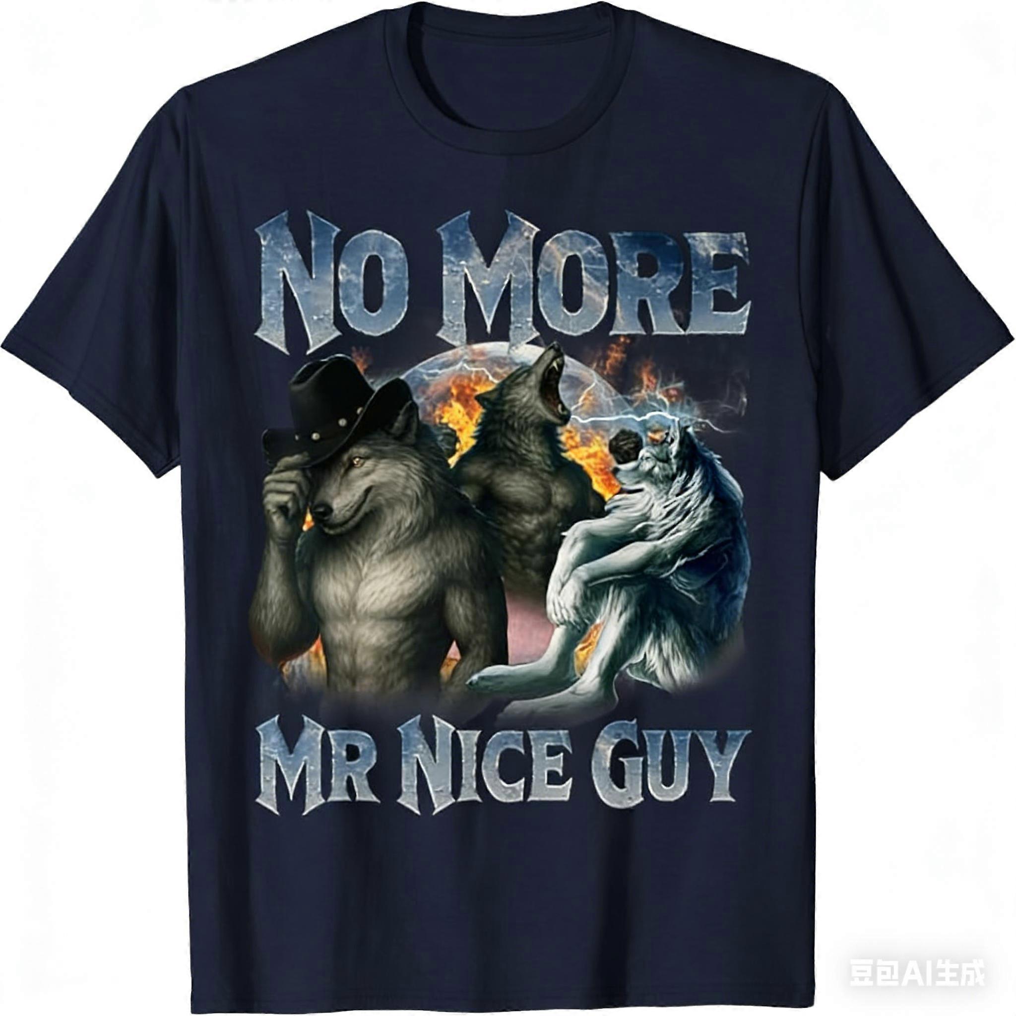 No More Mr Nice Guy Funny Alpha Wolf Meme Unhinged Brainrot T-Shirt Men and Women Oversize Fashion Casual Street Retro T-Shirt