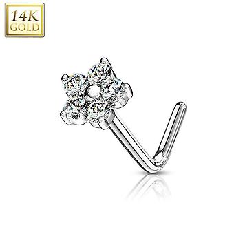 Nose ring l-bend with cz flower top 14kt solid gold 20g