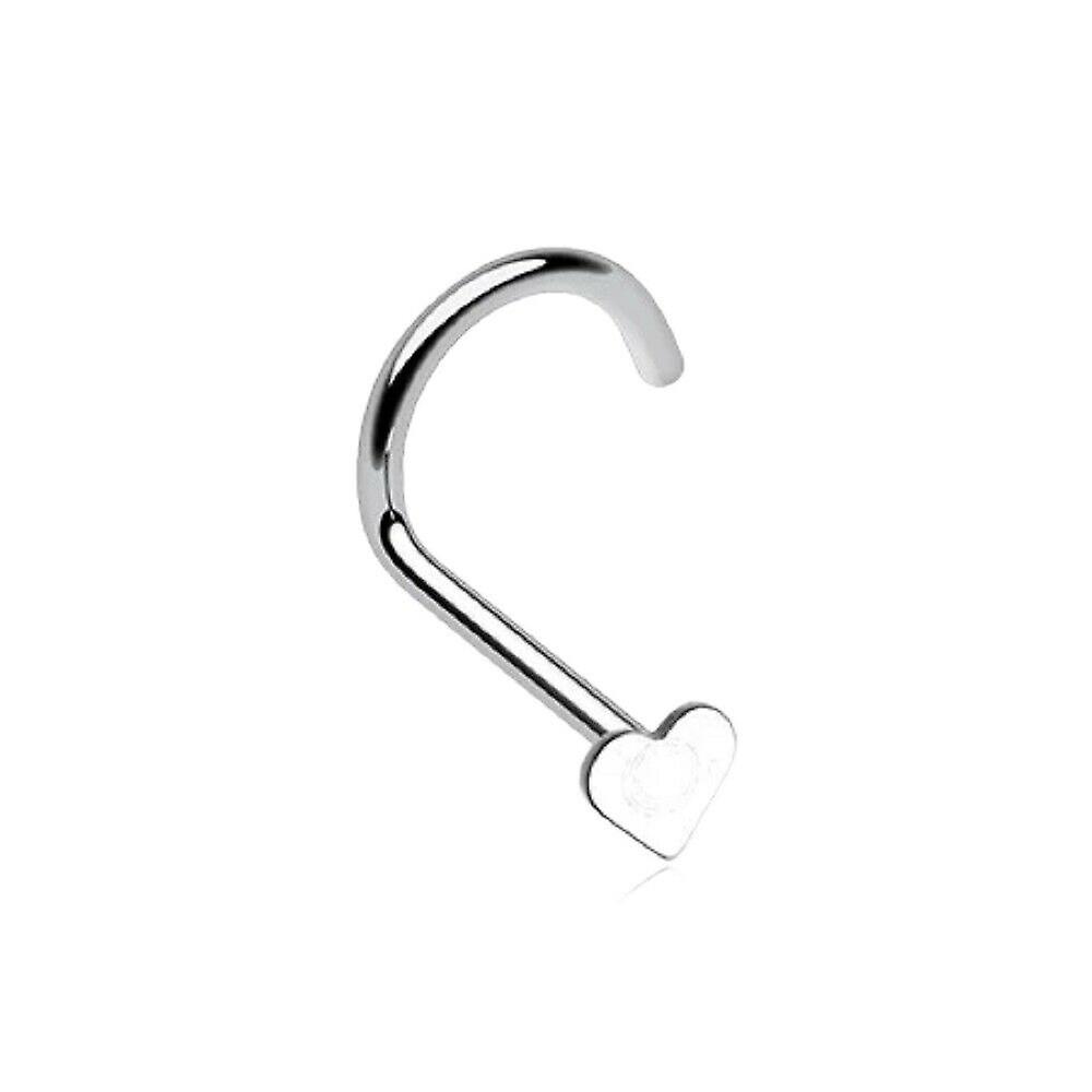 Nose screw ring with flat top heart 14kt solid white gold 20 gauge