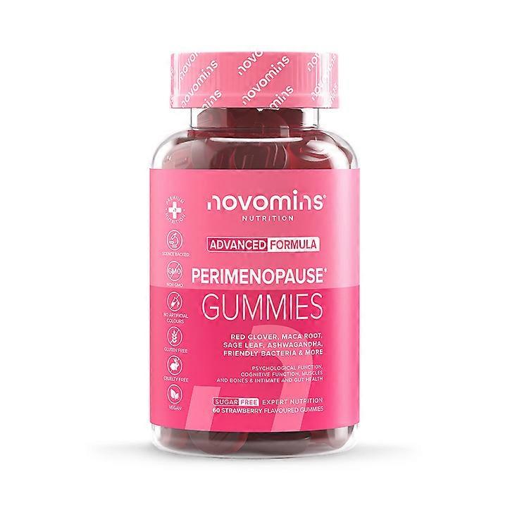 Strawberry-flavoured Perimenopause Gummies food supplement with sweeteners * HORMONAL SUPPORT: Vitamin B6 contributes to the regulation of hormonal activity * BONE & IMMUNE HEALTH: Vitamin D support normal bone maintenance, while Zinc contribute to immune function. Novomins Perimenopause Gummies are specially formulated to support women’s health and overall well-being with a premium blend of vitamins, minerals, and botanicals. Novomins is a health and wellness brand focused on providing high-quality, science-backed vitamins designed to enhance health and happiness. Their product range is developed by a team of doctors, pharmacologists, neuroscientists and nutritionist who prioritise both taste and effectiveness. Novomins emphasises the importance of using premium quality ingredients, ensuring that all their products are manufactured in facilities that adhere to strict manufacturing standards. Their facilities undergo regular, comprehensive inspections, and each product is third-party tested. With a commitment to transparency, Novomins ensures that their products are free from harmful additives and are suitable for various dietary requirements. Novomins places a strong emphasis on sustainability and ethical business practices, aligning with its certification as a B Corporation. Ingredients: INGREDIENTS: Sweeteners (Maltitol Syrup, Isomalt, Steviol Glycosides), Thickener (Pectin), Vitamin K2, Zinc (Zinc Citrate), Acidity Regulator (Sodium Citrate), Emulsifier (Coconut oil), Ashwagandha Extract, Red Clover Extract, Natural Strawberry Flavour, Glazing Agent (Vegetable Oil(Sunflower Seed Oil), Carnauba Wax), Maca Extract , Vitamin B6 (Pyridoxine Hydrochloride), Colour (Purple Carrot Juice Concentrate), Siberian Ginseng Extract (Eleutherococcus Senticosus Extract), Ginkgo Biloba Extract, Sage Leaf Extract (Salvia Ocinalis Extract), Bifidobacterium Longum Powder, Lactobacillus Acidophilus, Lactobacillus Reuteri, Lactobacillus Rhamnosus,(Citric Acid, Sodium Citrate), Sucrose Fatty Acid Aster, Coconut Oil, Vitamin C (as Ascorbic Acid), Vitamin E (as DL-Alpha-Tocopheryl Acetate), Cranberry Extract, Natural Peach Flavour, Purple Carrot Juice Concentrate, Glazing Agent (Vegetable Oil (Sunflower Seed Oil) (contains Carnauba Wax), Zinc (Zinc Citrate), Amla Extract, Vitamin A (as Retinyl Acetate), Selenium (Sodium Selenite), Copper (Copper Sulphate Compounded), Vitamin B6 (as Pyridoxine Hydrochloride), Pantothenic Acid (as D-Calcium Pantothenate), Omega3 (Chia Seed Oil), Magnesium (Magnesium Sulphate), Vitamin B12 (as Cyanocobalamin), Lycopene, Vitamin B2 (as Riboflavin), Folic Acid, D-Biotin Always read the label before use Advisory Information: Do not exceed the recommended daily dose. Food supplements must not be used as a substitute for a varied and balanced diet and a healthy lifestyle. If you are pregnant, nursing or taking any medication or are under medical supervision, please consult your doctor or a medical professional before use. Discontinue use and contact a doctor immediately if any adverse reactions occur. Gummies are intended to be chewed and not swallowed whole. This product is suitable for vegetarians. Remember To: We go to great efforts to ensure that the information on this page is accurate at the time that the page was last edited. As we are constantly reviewing and developing our products to meet our consumer needs, consumers, particularly those that suffer from allergies and intolerances, should always check product labelling, warnings, and directions provided with the product that is delivered, prior to use or consumption. Directions: FOR BEST BEFORE END/LOT, PLEASE SEE BASE. Chew 2 gummies daily for optimal results, or as directed by your healthcare professional.