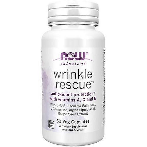 Oxidative stress can play a major role in accelerating the aging process.* It is the result of typical environmental factors such as pollution and ozone, and internal factors such as normal metabolic processes.* Now Wrinkle Rescue? contains -soluble antioxidants such as vitamin A and E that are naturally present in the skin and help to protect against oxidative damage occurring from both internIngredients: Supplement Facts Serving Size: 2 Veg Capsules Amount Per Serving % Daily Value Vitamin A (from Retinyl Palmitate) 100 mcg 11% Vitamin C (from Ascorbic Acid and Ascorbyl Palmitate) 500 mg 556% Vitamin E(from d-alpha Tocopheryl Succinate) 100 mg 667% DMAE (from Dimethylaminoethanol Bitartrate) 100 mg Alpha Lipoic Acid 100 mg Green Tea Extract (Camellia sinensis) (Leaf) 100 mg Grape Seed Extract (Vitis vinifera) (Standardized for Polyphenols) 50 mg L-Carnosine (?-alanyl-L-histidine) 50 mg Daily Value not established. Other Ingredients: Hypromellose (cellulose capsule), Stearic Acid (vegetable source) and Silicon Dioxide. Vitamin E from non-GMO soy.