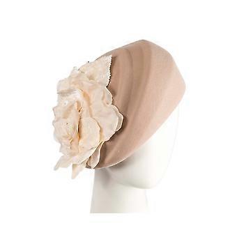 Nude Wool Hat with Floral Accent - Winter Elegance F709NU