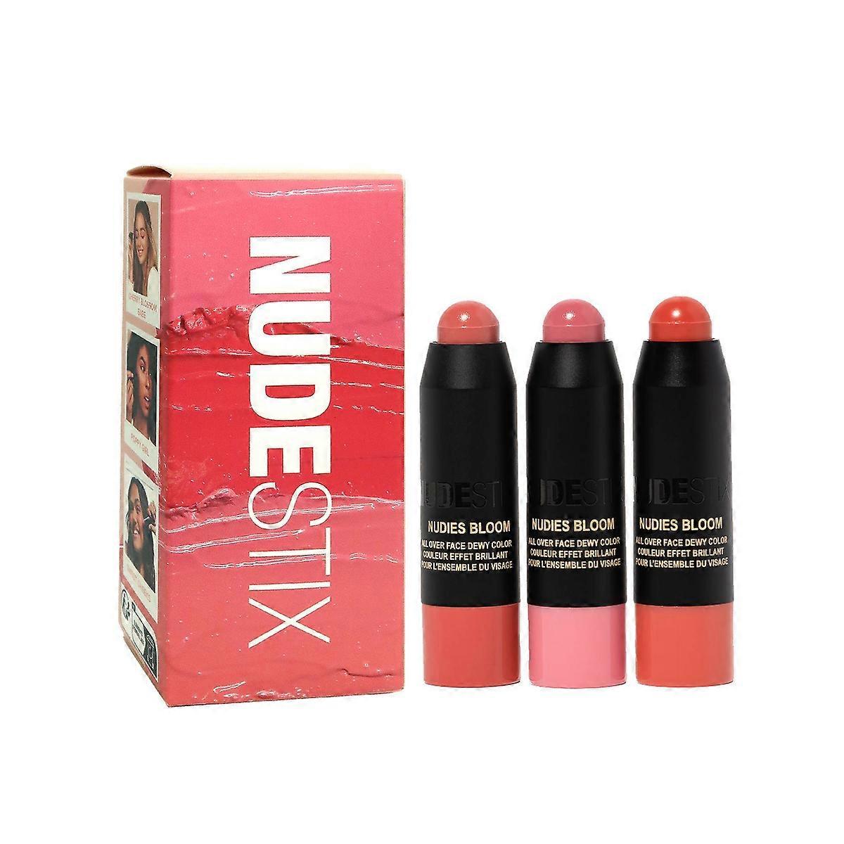 This exclusive, mini 3-piece kit featuring our iconic NUDIES BLOOM ALL OVER FACE DEWY BLUSH COLOR. These multi-purpose sticks provide a fresh and healthy, natural pop of color to the cheeks, lips and eyes. Longwearing yet non-sticky for fresh-faced, glowing, youthful-looking skin that lasts. These 3 shades can be worn alone or mix and match to create multiple looks. Each kit packaging includes black tin with built-in mirror FEATURES: Mini NUDIES Bloom All-Over Face Dewy Blush Color •Natural Dewy Finish •Sheer pop of color •Long-wearing •Multi-tasking (eyes, lips and cheeks) •Non-drying •Easy application SHADES INCLUDED •CHERRY BLOSSOM BABE (Cool Fresh Rose) •POPPY GIRL (Neutral Watermelon Coral) •SWEET CHEEKS (Warm Soft Pink) •Vegan •Gluten-free •Cruelty-free •Fragrance-free Formulated without: •Parabens •Sulfates •Phthalates Long-wearing Natural, Dewy Finish Travel-friendly Easy application Curated all-over face look Recyclable tin with built in mirror Vegan, Gluten-free, Cruelty-free, Fragrance-free Formulated without parabens, sulfates, phthalates