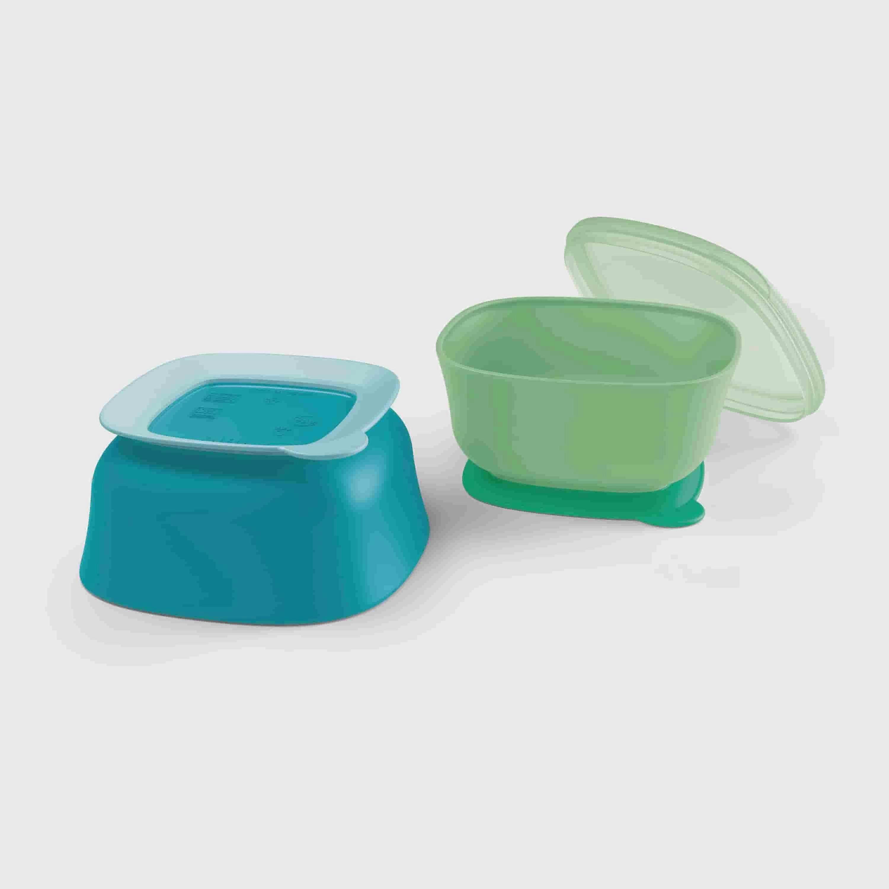 Mealtime can be messy with babies who are just starting to feed themselves. NUK suction bowls are designed to prevent accidental tipping and minimize the temptation to toss bowls onto the floor. The strong suction base sticks to most flat surfaces, and the quick-release tab makes removal easy for parents. Bowls feature high walls that help baby get more food onto their spoons, as they scoop against the sides. NUK suction bowls also come with leak-proof lids, great for travel or daycare and post-mealtime storage in the refrigerator. Microwave-safe for warming up meals and top rack dishwasher-safe for fast, parent-friendly cleanup. Plus, bowls and lids are BPA-free for total peace of mind.