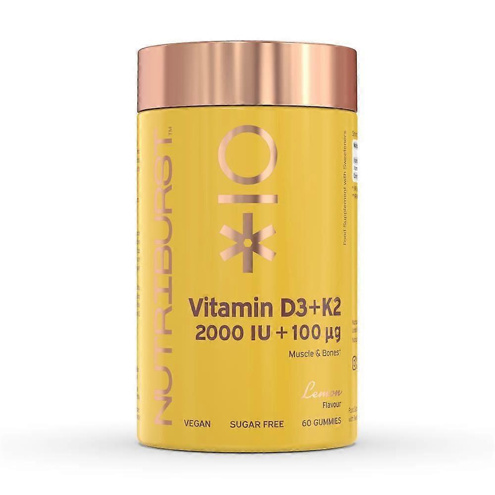 Nutriburst Sugar-Free Vegan Vitamin D3 + K2 Gummies offer a convenient and tasty way to support your overall health and well-being. Each serving provides 2000 IU of vegan Vitamin D3 alongside 100 µg of Vitamin K2, delivering a powerful combination designed to promote the maintenance of normal bones. This expertly formulated supplement supports not only bone health but also contributes to the maintenance of normal muscle function and the normal functioning of the immune system. The lemon-flavored gummies are sugar-free and made to be gentle on your system, making them an excellent choice for those seeking effective nutritional support without added sugars. Free from common allergens such as gluten, nuts, eggs, milk, and soy, these gummies are suitable for a wide range of dietary preferences and restrictions. The vegan-friendly formula ensures that individuals following plant-based lifestyles can enjoy the benefits without compromise. Easy to incorporate into your daily routine, simply take two gummies with food each day for a 30-day supply of essential vitamins. Whether you are looking to enhance bone strength, support muscle function, or boost immune health, Nutriburst Vegan Vitamin D3 + K2 Gummies provide a reliable and enjoyable solution. Supports the maintenance of normal bones Contributes to normal muscle function Promotes a healthy immune system Sugar-free, lemon flavored, and vegan-friendly Free from gluten, nuts, eggs, milk, and soy Convenient 30-day supply with easy daily dosing