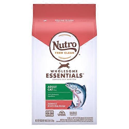 1 ingredient, natural fiber for healthy digestion, and essential antioxidants for a healthy feline immune system. This premium cat kibble is also rich in omega 6 fatty acids to support healthy skin and a healthy coat. NUTRO Dry Cat Foods are made with quality, real ingredients carefully sourced from a trusted network of farmers and suppliers and have no corn, wheat, or soy protein, no chicken by-product meal, and no artificial preservatives, flavors, or colors. Give your adult cat a complete, nutritious meal every time with NUTRO WHOLESOME ESSENTIALS Adult Cat Natural Dry Cat Food Plus Vitamins, Minerals & Other Nutrients. * Trace amounts of genetically modified material may be present due to potential cross-contact during manufacturing. Contains one (1) 5 lb. bag of NUTRO WHOLESOME ESSENTIALS Adult Salmon & Brown Rice Recipe Natural Cat Food Plus Vitamins, Minerals & Other Nutrients. Real salmon is the