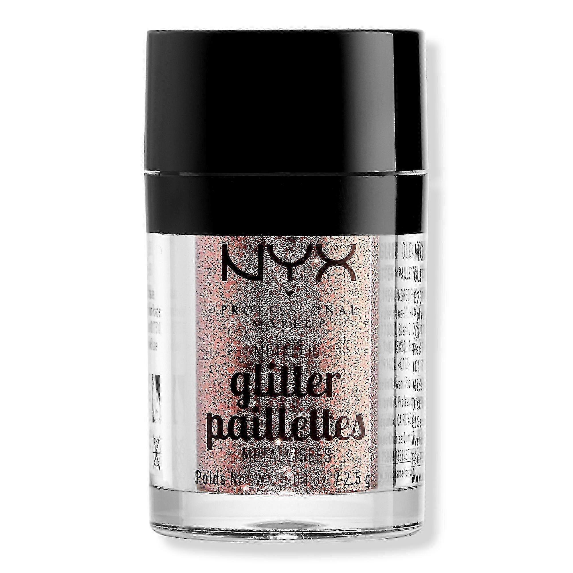 NYX Professional Makeup Metallic Glitter is your go-to sparkle These loose shimmering face & body glitters are perfect for adding a little extra shine. Benefits Shimmering loose cosmetic glitter for face and bodyAvailable in six ultra-reflective highly pigmented shades ranging from deep bronze glitter to holographic pink and sandy gold glitterA festival makeup must-have that'll make your face & body art truly shine, this glitter takes any makeup look to the next level, whether you're looking to add some eye makeup glitter or body glitterFor best results use with NYX Professional Makeup Glitter PrimerVegan glitter formula (no animal-derived ingredient or by-product)Cruelty free Suggested Use: Prep with Glitter Primer to minimize glitter fallout. Apply Metallic Glitter to the face or body using the NYX Professional Makeup Pro Flat Detail Brush or Dual Fiber Detail Brush. Pro Tip: Anchor glitter with an eyeshadow of the same shade to intensify the color. Expiration Date: We have fresh stock each week with exceptional expiration dates prior to APRIL 2024. Products will expire no later than six months to 1 year after receipt. Product Packaging: Please note that some manufacturer may often change their packaging. This product may arrive different from what is pictured. We will always ship the most up-to-date packaging to our customers. Please contact us if you have any questions about this product or would like to request an older version of this product. Healthcare Disclaimer: Content on this site is for reference purposes only. OTC Shoppe Express does not represent or warrant that the nutrition, ingredient, allergen and other product information on our Web or Mobile sites are accurate or complete, since this information comes from the product manufacturers. On occasion, manufacturers may improve or change their product formulas and update their labels. We recommend that you do not rely solely on the information presented on our Web or Mobile sites and that you review the product's label or contact the manufacturer directly if you have specific product concerns or questions. If you have specific healthcare concerns or questions about the products displayed, please contact your licensed healthcare professional for advice or answers. UPC: 000002520630 Weight: 0.57 lbs