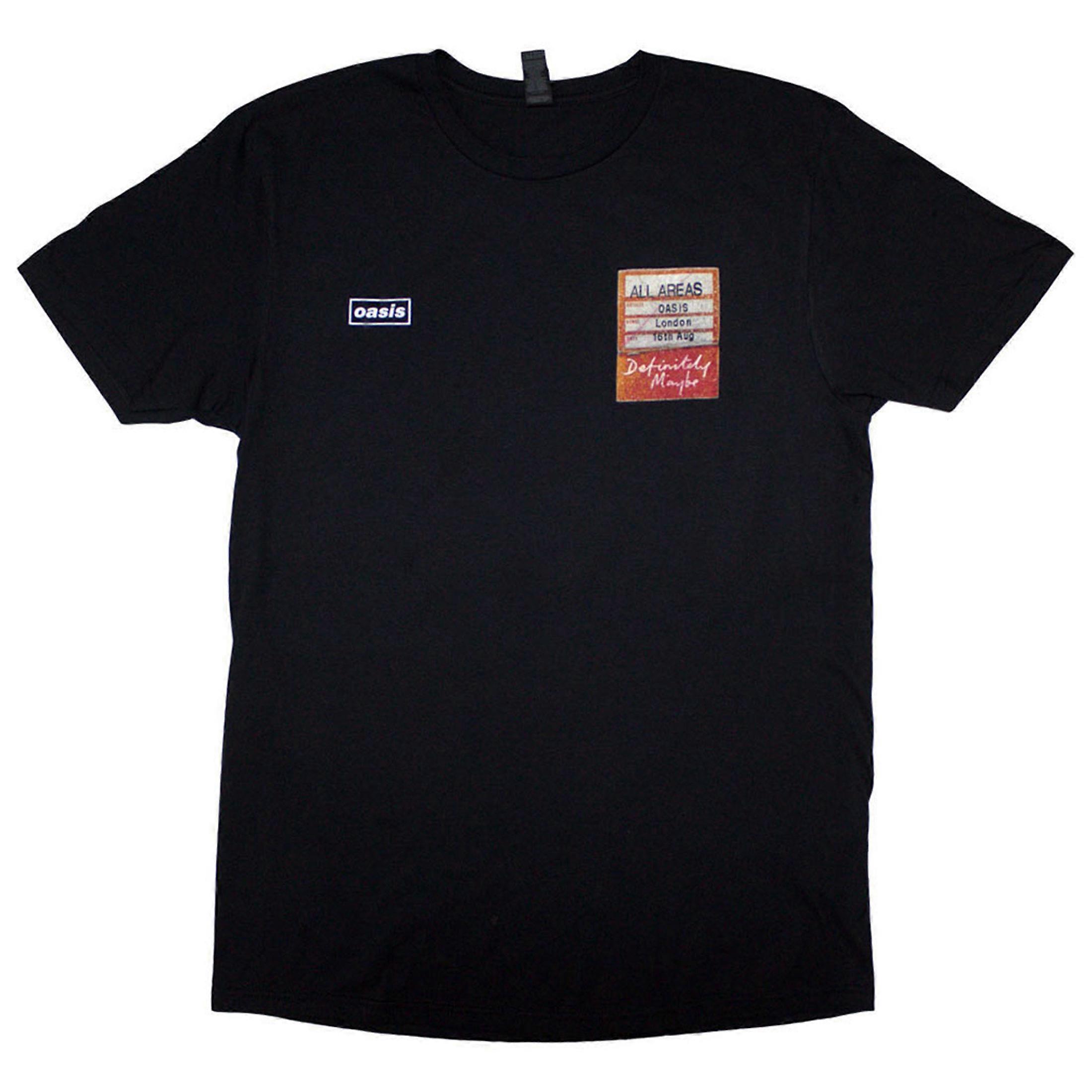 Official licensed Oasis Unisex T-Shirt featuring the 'Definitely Maybe AAA Setlist' design motif. High quality black unisex t-shirt featuring front and back printed design motifs. Comes in a wide range of sizes from Small through XX-Large, subject to availability.