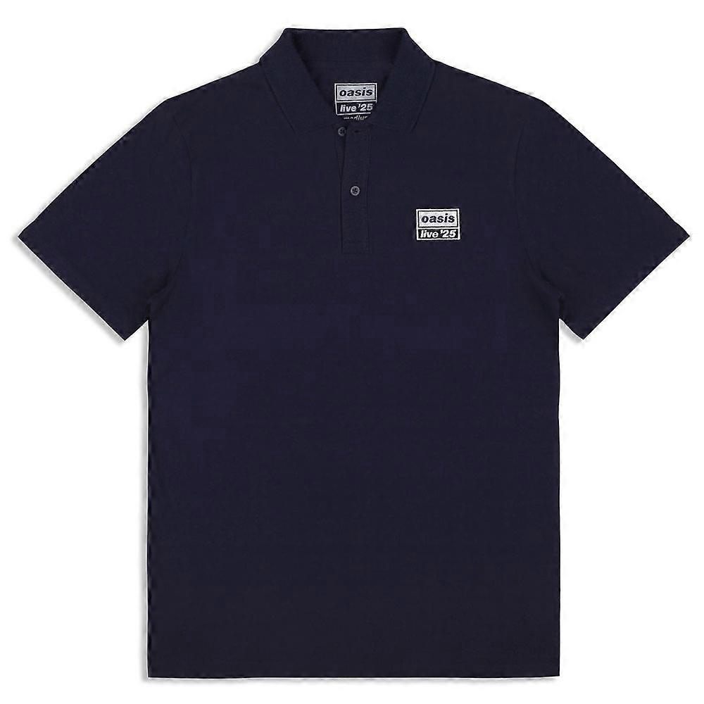 Celebrate Oasis with this exclusive Live 25 EX Tour Stock T-Shirt. An official licensed Oasis Polo T-Shirt featuring the 'Live 25 Lockup' design motif. This high quality unisex tee is available in navy colorway. Comes in a wide range of sizes from X-Small through XXX-Large, subject to availability.