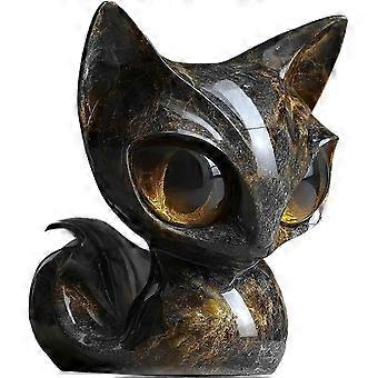 Obsidian Gaze - The Enigmatic Cat Sculpture, Black Cat Statue, Lucky Cats Figurines Sculpture,Luxury Black Cats Stone Sculptures for Home Office Desk