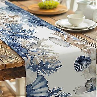 Ocean Elements Table Runner Blue Polyester Tablecloth Seasonal Kitchen Dining Table Decoration for Home Party Festival Decor 13x90 Inch