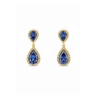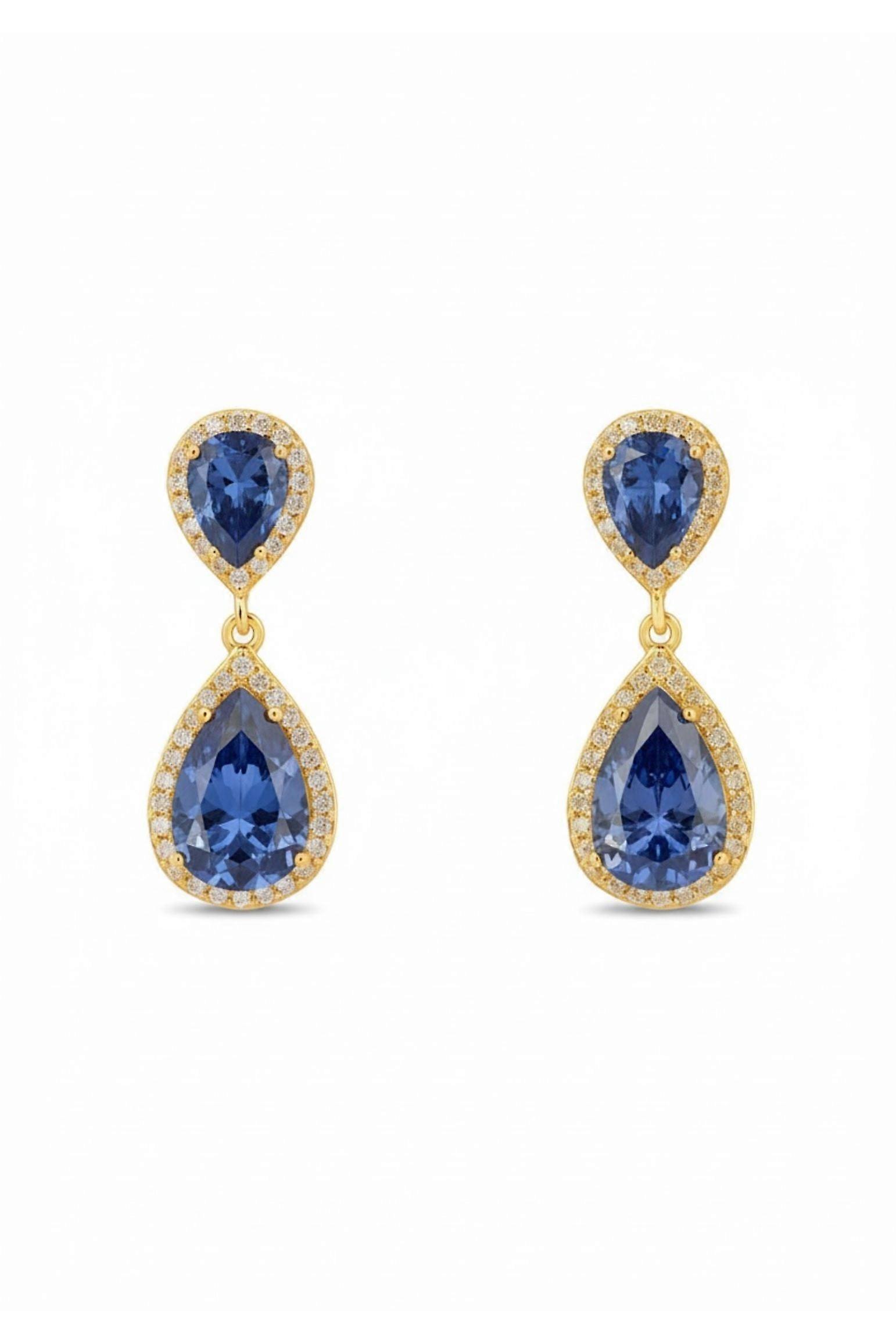 Step into a world of enchantment with the Odette Teardrop Tanzanite Earrings, beautifully crafted from 925 sterling silver plated in 18 carat gold. These captivating drops feature a double teardrop design, each silhouette linked delicately at the tapered point. Inside each frame, a mesmerising lab created tanzanite stone sits encircled by shimmering zirconia, ensuring every movement catches the light with grace.Measuring 3.0 cm in length and 1.0 cm in width with a total weight of 6.0 grams, these earrings offer both presence and comfortable wear. Tanzanite, known for its rich blue violet glow, carries symbolism of intuition, communication and heightened awareness, making this a deeply meaningful piece to wear close.As tanzanite is also the birthstone for December, the Odette Teardrop Tanzanite Earrings make a thoughtful and personal gift for winter birthdays. More than an accessory, they are a treasure that blends beauty, depth and individual expression.