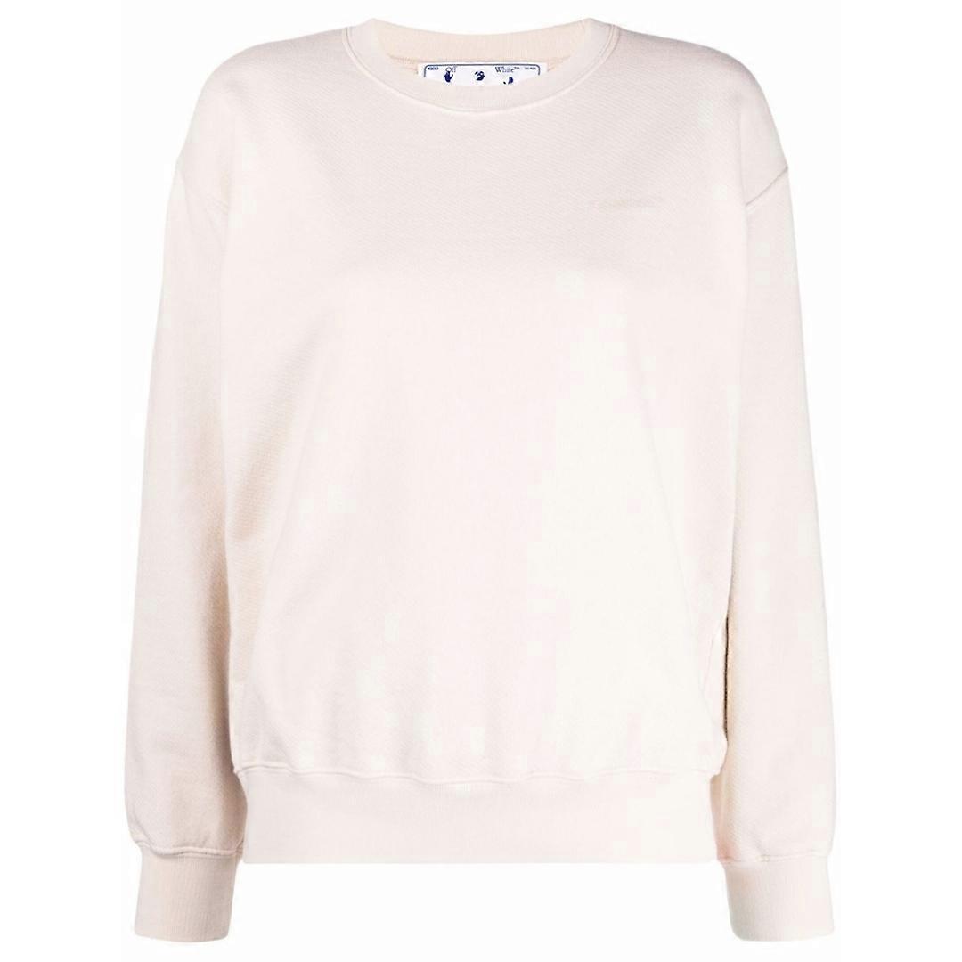 Off-White Logo on Front Chest, Off-White Beige Sweatshirt 100% Cotton, Long Sleeve, Elasticated Waist and Sleeve Endings Crew Neck, Streetwear, Made In Italy Beige Sweatshirt