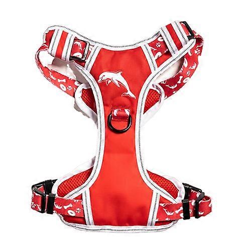 ntroducing the NRL Dog Harness, available in sizes from X-Small to X-Large. Crafted from high-quality neoprene (for smaller sizes) and canvas (for larger sizes), it features adjustable straps for a perfect fit. Complete with breathable mesh lining, quick-drying material, and D-rings for regular and no-pull walking Custom printed canvas materialQuick drying material after washingFully adjustable polyester webbing neck and chest strapsBack D ring for regular walkingAlso includes a front D-Ring for no pull walking (only available on our Large and X-Large harnesses).Official MerchandiseNeck: 60-85cm, Chest: 83-105cm, Ribbon: 2.5cm